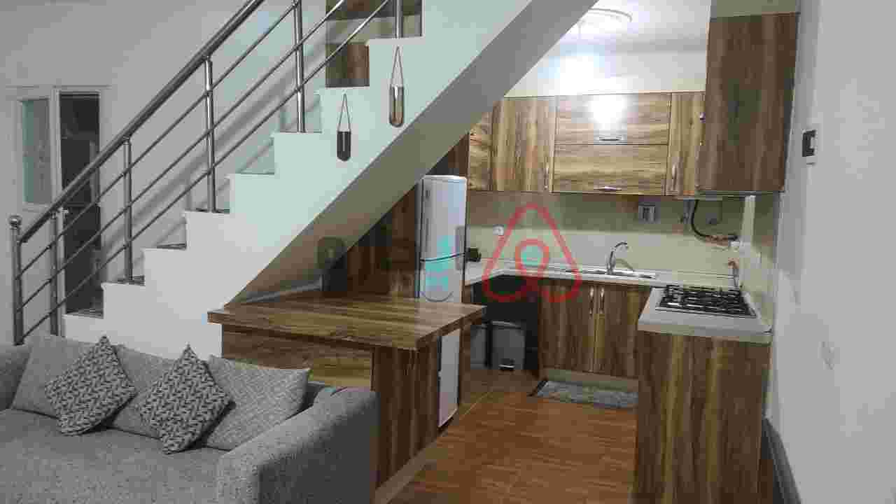 آشپزخانه مجهز با یخچال، اجاق گاز و لوازم کامل آشپزی